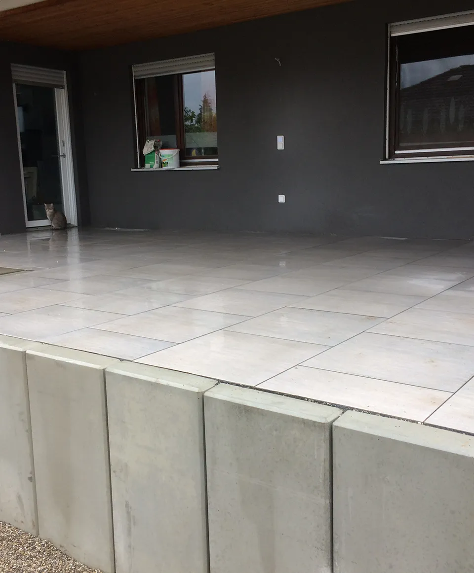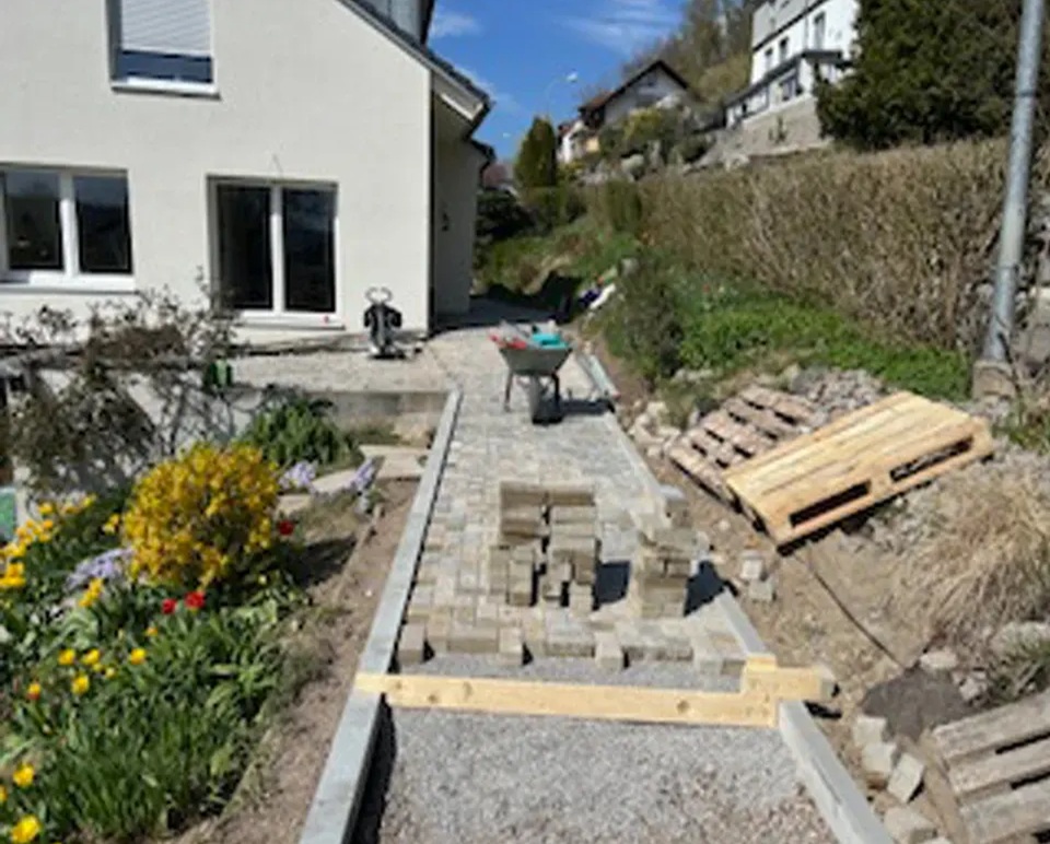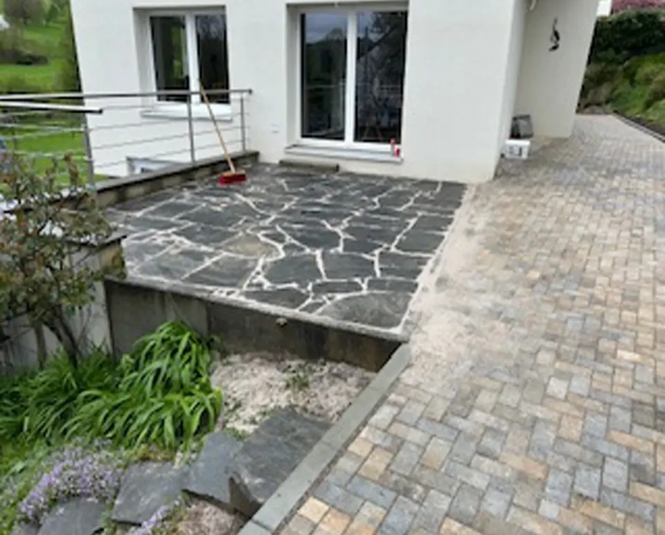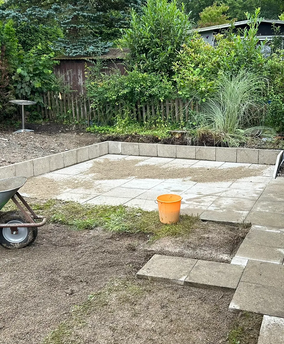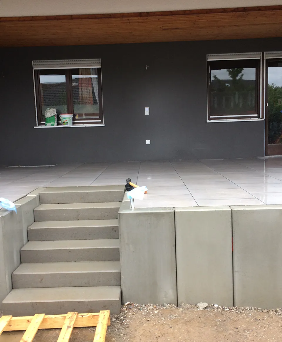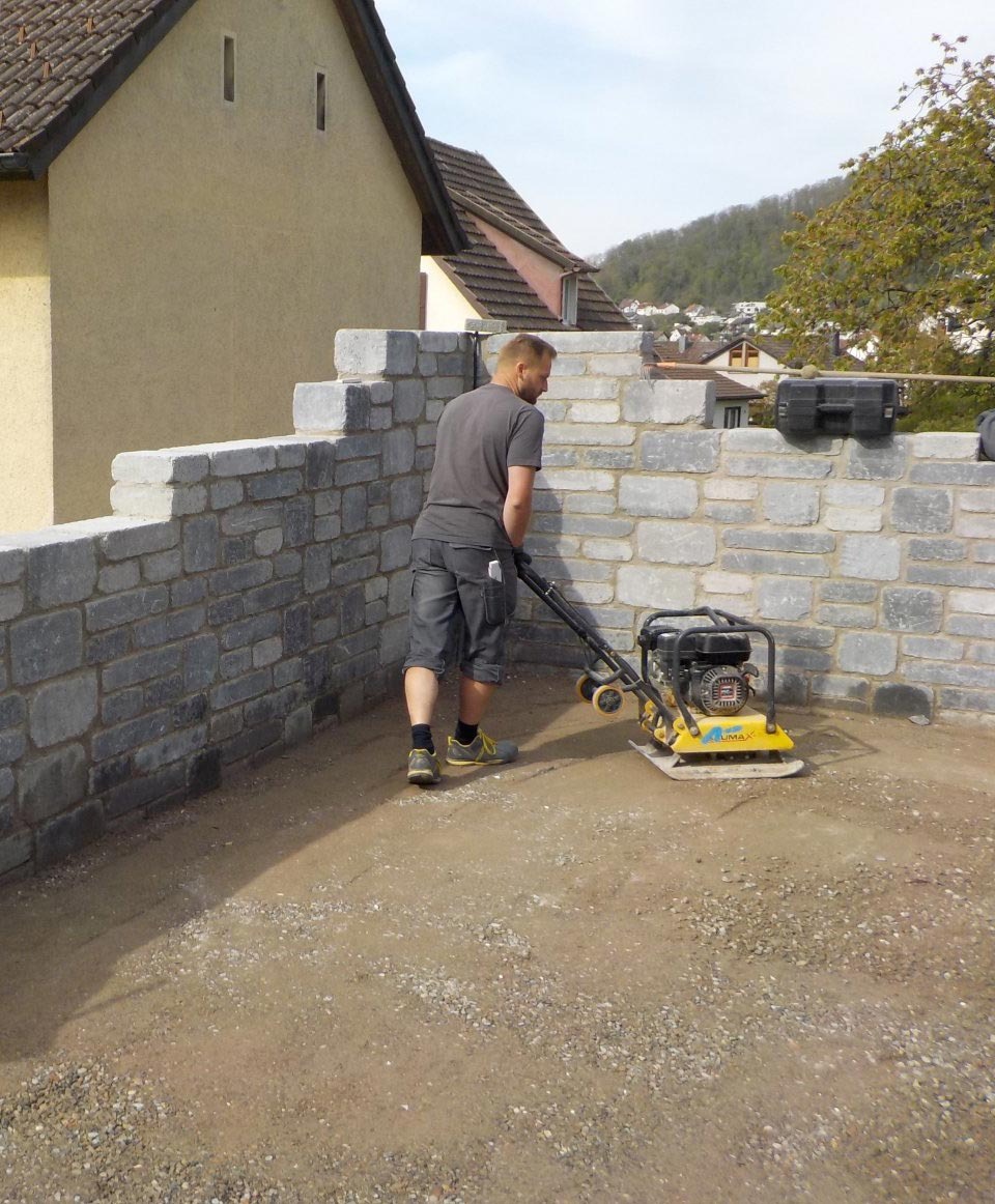 Für unseren Kunden in Hauingen haben wir eine neue Terrasse mit umgebender Mauer und gepflastertem Boden angelegt. Sämtliche nötige Arbeiten wie Erdarbeiten, das Anlegen des Fundaments und der Randsteine, Mauer- und Treppenbau und die Pflasterung wurden von uns ausgeführt.