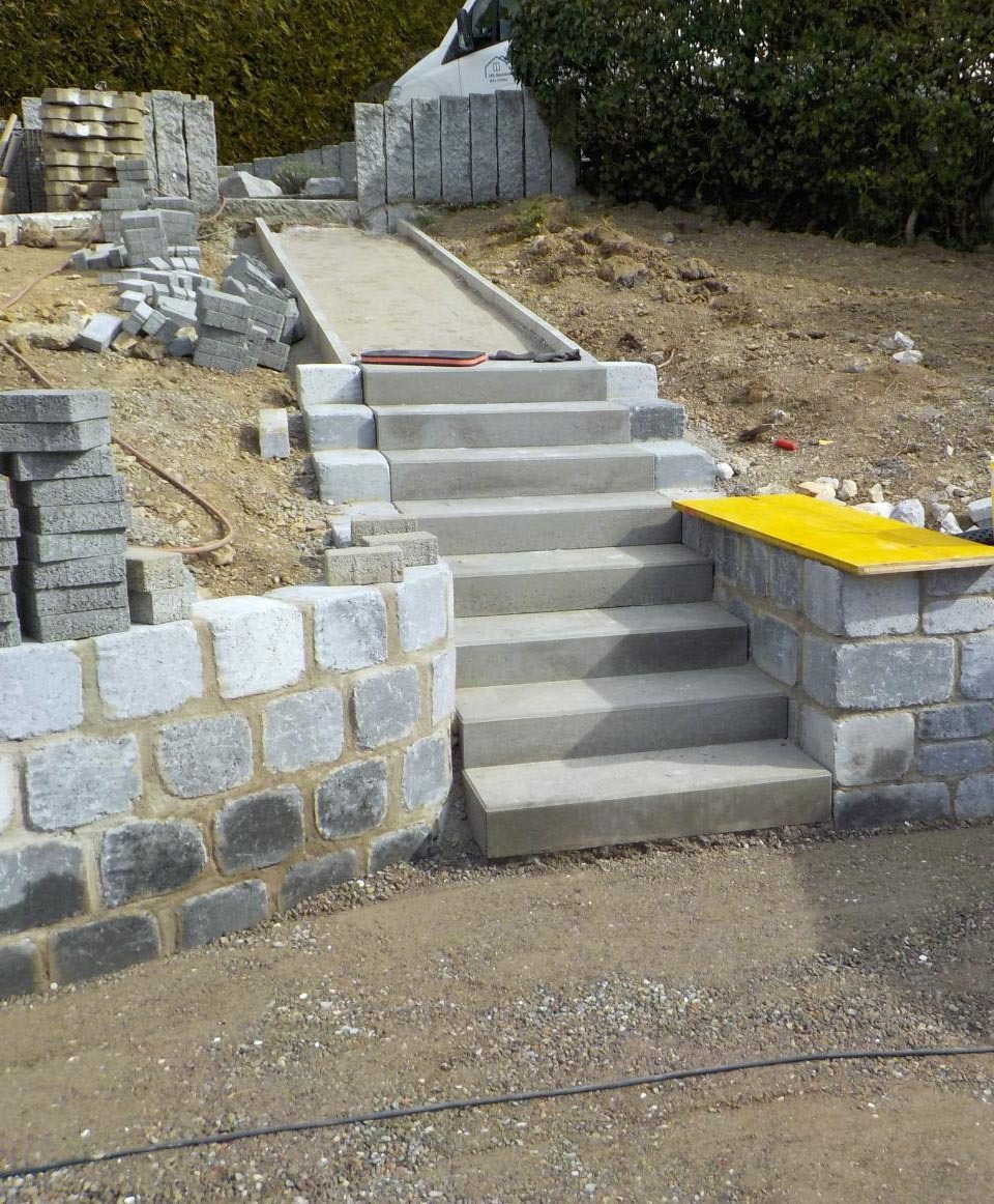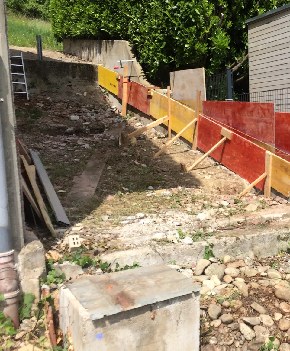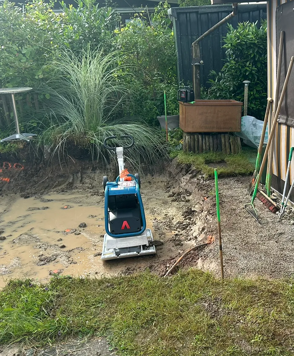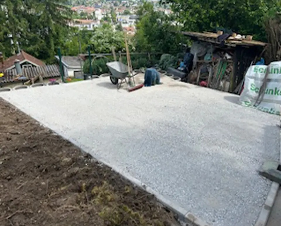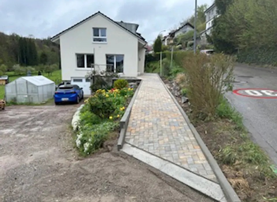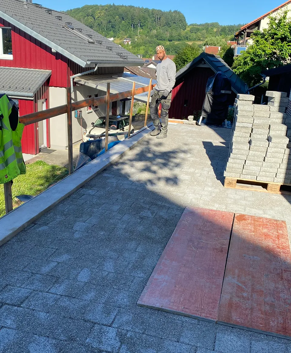 Für unseren Kunden in Hauingen haben wir eine neue Terrasse mit umgebender Mauer und gepflastertem Boden angelegt. Sämtliche nötige Arbeiten wie Erdarbeiten, das Anlegen des Fundaments und der Randsteine, Mauer- und Treppenbau und die Pflasterung wurden von uns ausgeführt.