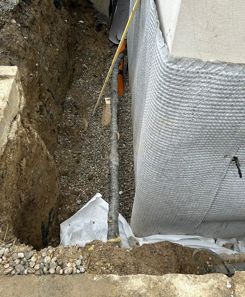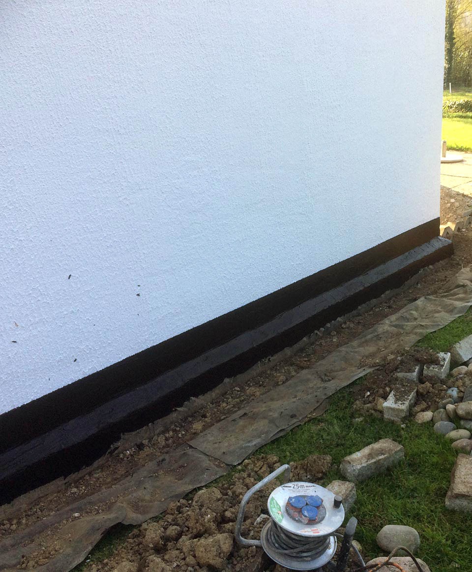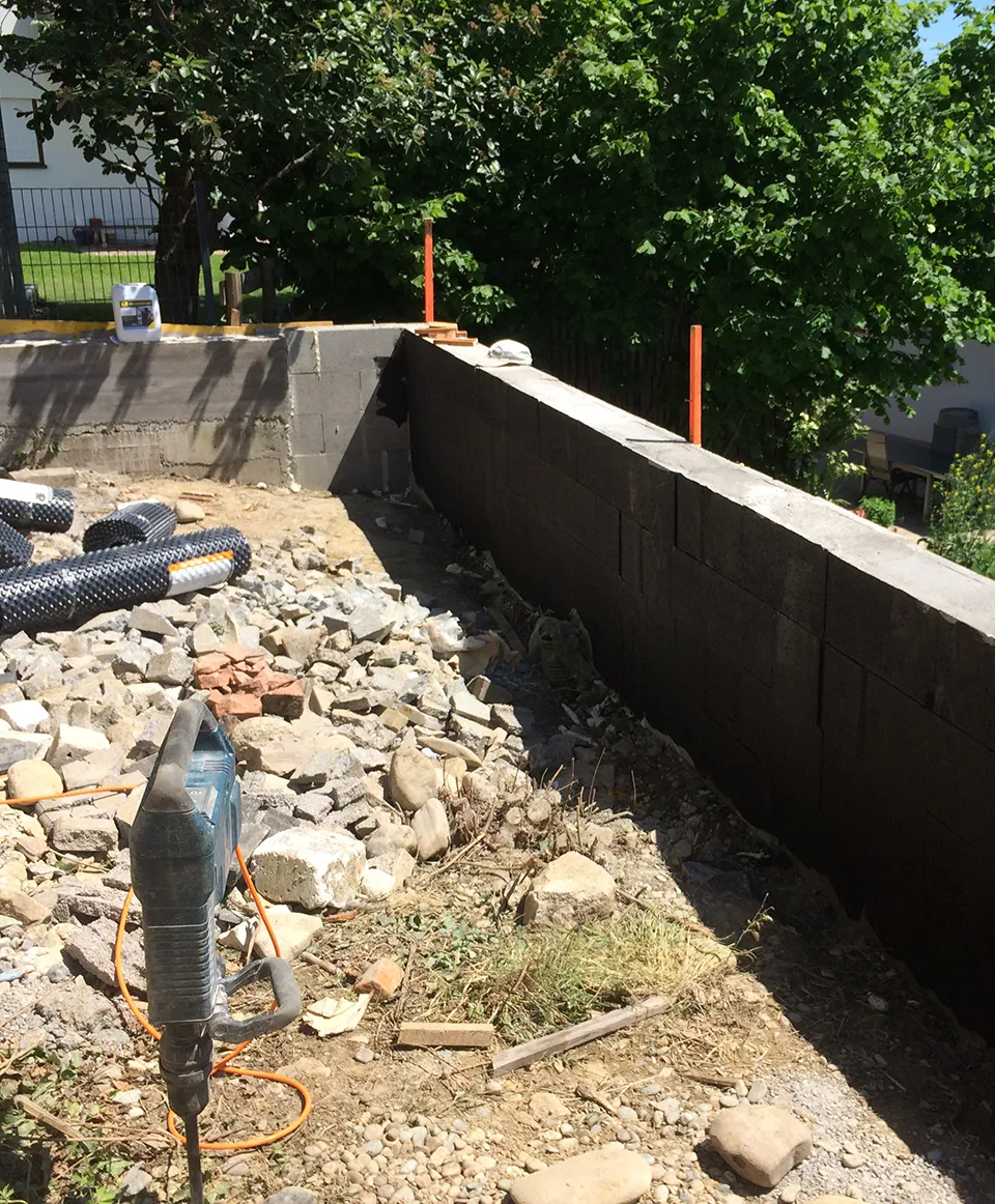 Die Kellerwand wurde dabei zunächst entlang der Fundamentmauer ausgegraben. Der zuvor undichte Übergang von Boden zur Wand wurde mit einer geeigneten Technik fachgerecht abgedichtet und schützt nun langfristig vor erneuten Feuchtigkeitsschäden.